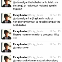 Ahahahaha... gila broh! Kalo ane jadi agan sih udah sakit ati stadium 10 itu! Buset deh. Agan kuat juga ya imannya. :iloveindonesias Yoi... Btw menurut twitter ricky. Sepertinya masih berhubungan baik mah ma nyokapnya. Tgl 17 september ricky ucapin thx atas kado dari nyokapnya. Tgl 21 si RH nge