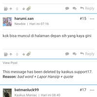 Kalo nanya ks di jawab gak kak sel? Klo kek gt brarti ada yg report hansip ya? dijawab kok. kasih aja link n screenshootnya. ini link postnya https://www.kaskus.co.id/show_post/5c0337b614088d94308b4567/16/- iya ada yg lapor hansip