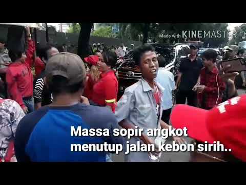 Ratusan sopir angkot trayek M03, M08 dan M10 melakukan aksi unjuk rasa di depan Gedung Balai Kota DKI Jakarta untuk memprotes penutupan Jalan Jatibaru Raya, Tanah Abang.