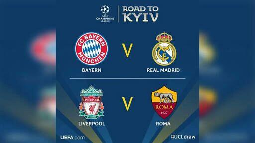 Football lovers, UEFA Champions League telah memasuki babak semifinal. Empat tim terbaik berhasil lolos ke babak ini. Keempat tim berasal dri 4 negara dengan sepakbola terbaik di Eropa untuk saat ini. Real Madrid (Spanyol), Liverpool (Inggris), Bayern Munchen (Jerman) dan AS Roma (Italia).