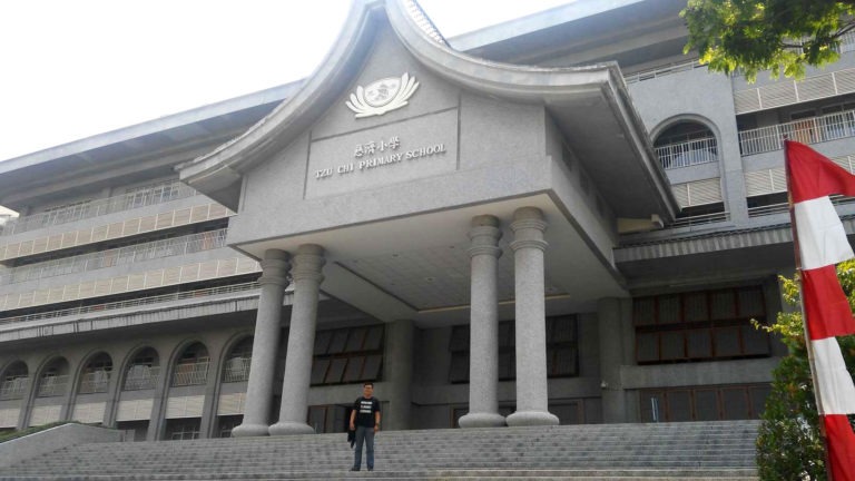 Thina pun sepertinya tidak mau kalah eksis. Beberapa kali Ia berhenti dan minta tolong saya untuk memotretnya dengan latar Gedung Tzu Chi dari beberapa sudut. Wajar saja, sebagai seorang mahasiswi sastra mandarin, bagi Thina komplek gedung Buddha Tzu Chi bukanlah hal yang asing lagi. Ia sudah pernah beberapa kali berkunjung kesini, bahkan sudah pernah masuk ke salah satu acara di DAAI TV juga lho.