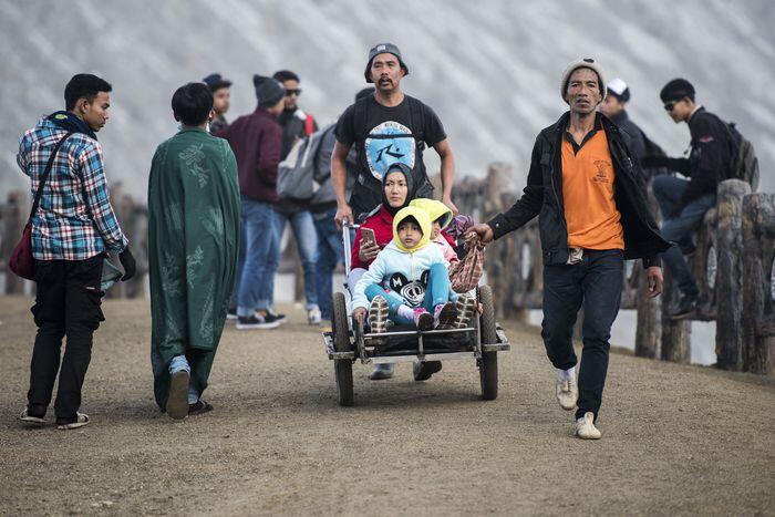 Jawa Timur - Keindahan Gunung Ijen menarik banyak wisatawan. Mengalirnya wisatawan itu membuat warga berinovasi untuk mendulang rezeki, salah satunya melalui 'Taksi' Ijen.