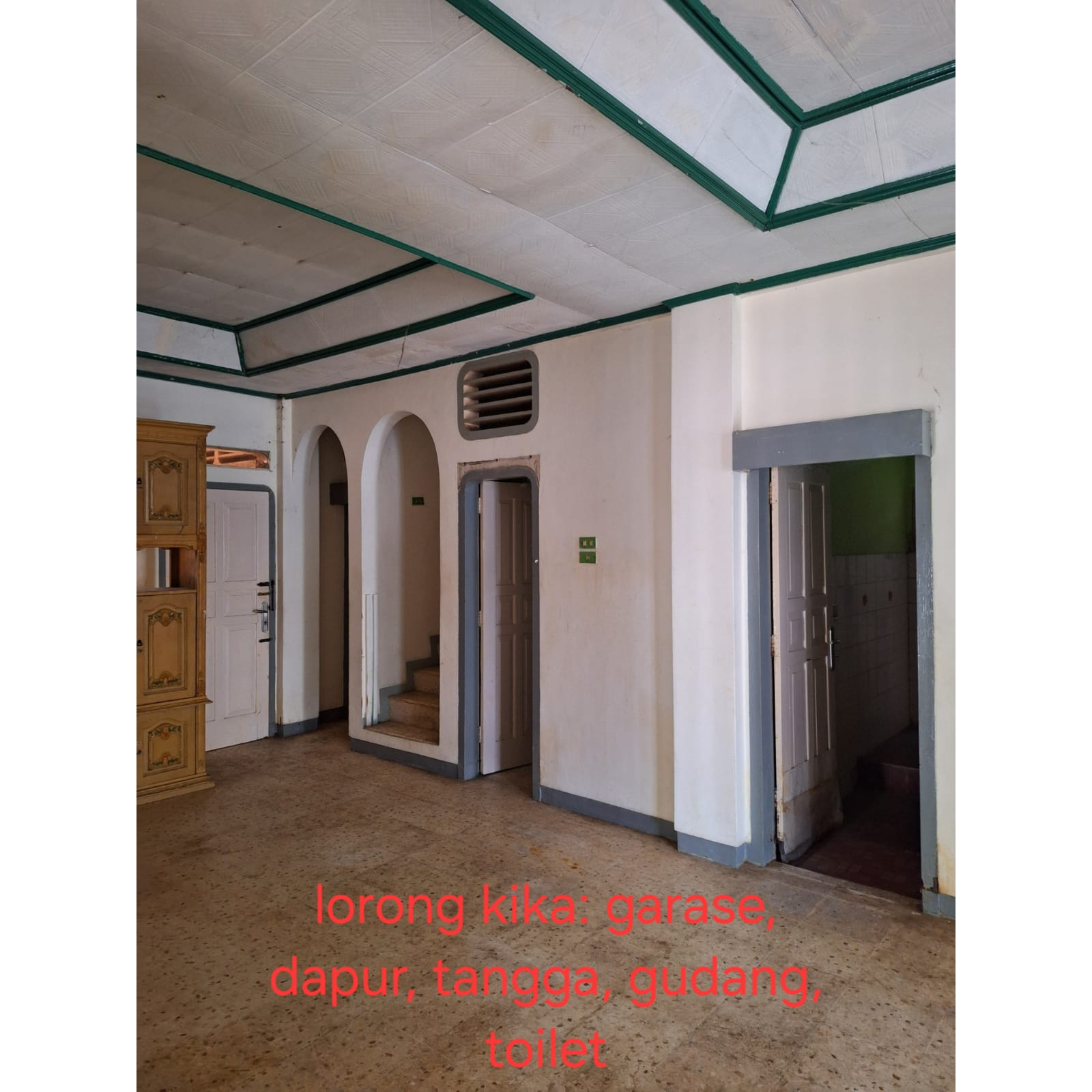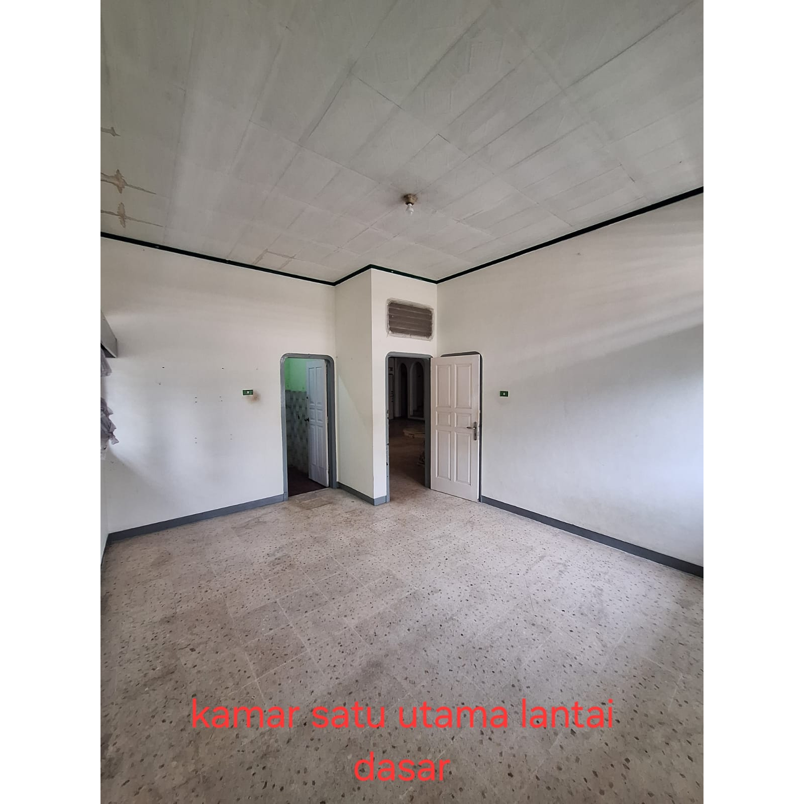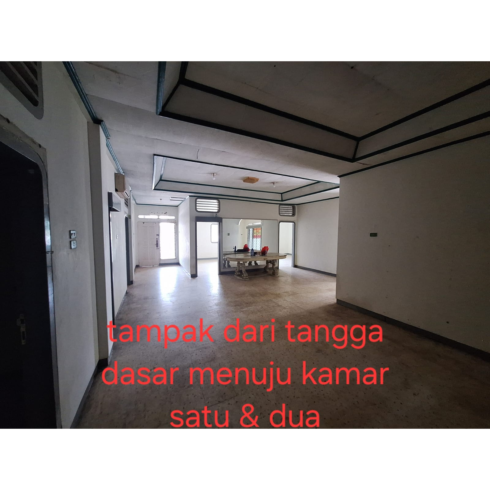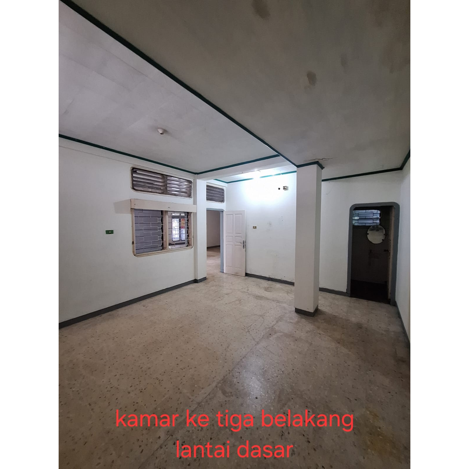 -Lantai dasar: k tidur 3 (yg dua ada k mandi di dlm), k mandi 1 di luar, ruang tamu, ruang keluarga, ruang makan, dapur, teras, taman leter L