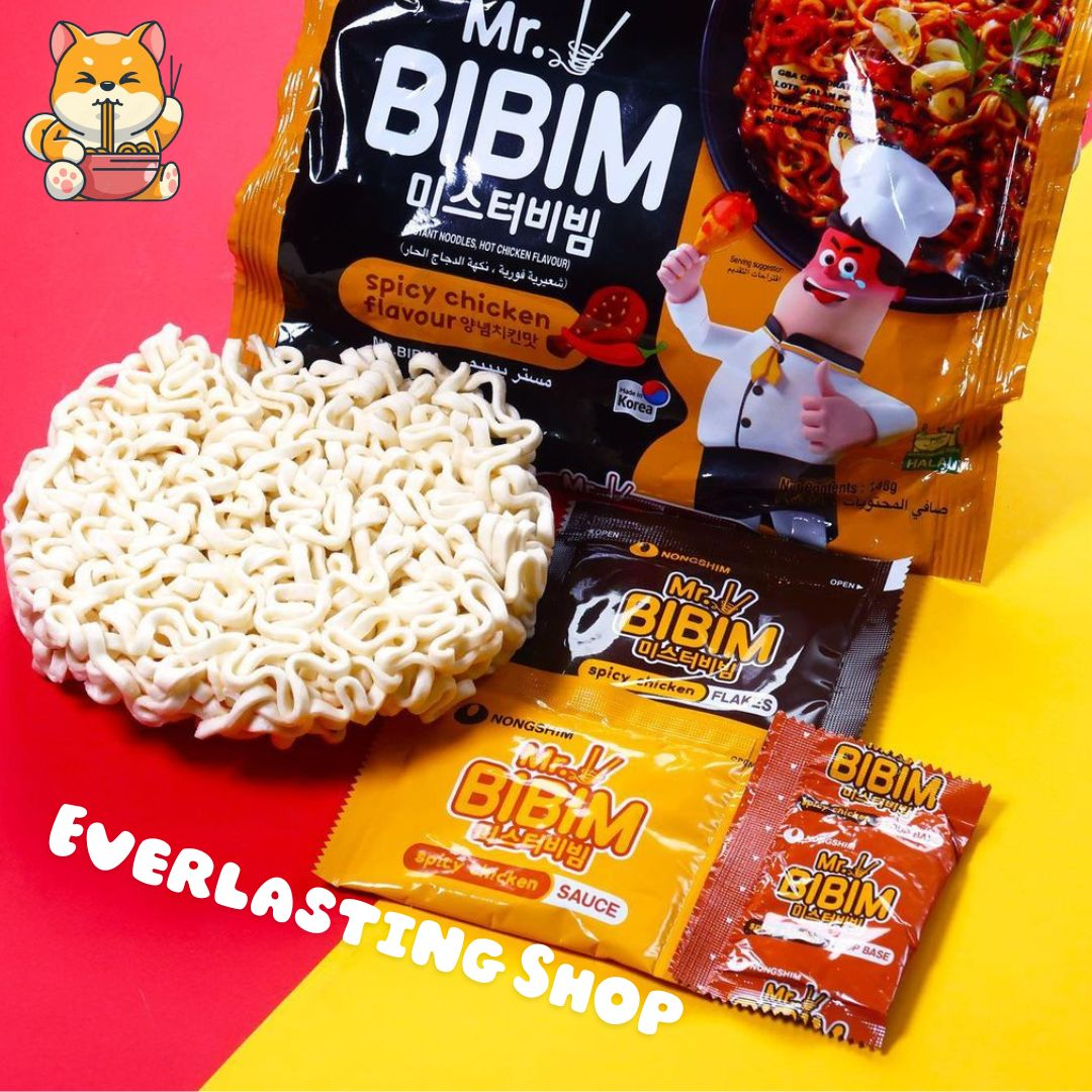 Mr. Bibim Spicy Chicken Flavour Mr.Bibim adalah mie instan yang akan memuaskan hasrat Anda akan masakan Korea yang kaya akan rasa Ayam Pedas Korea. Coba dan nikmati langsung sensasi ayam pedas korea yang bikin ketagihan!
