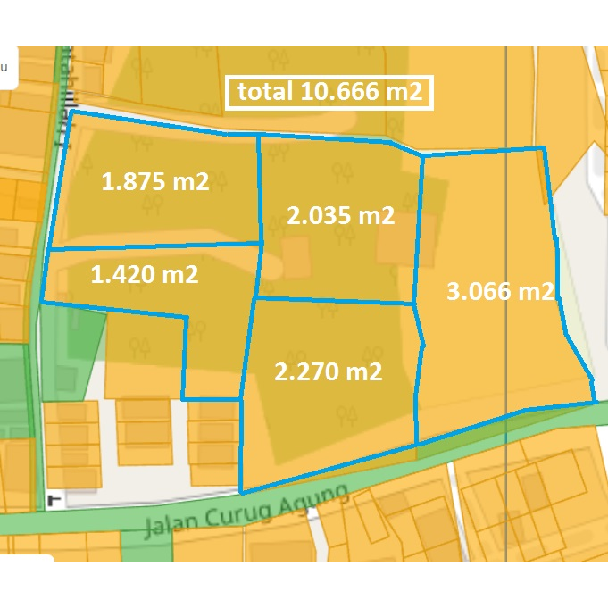Luas tanah : 10.666 m2. LEBAR DEPAN 100 m2