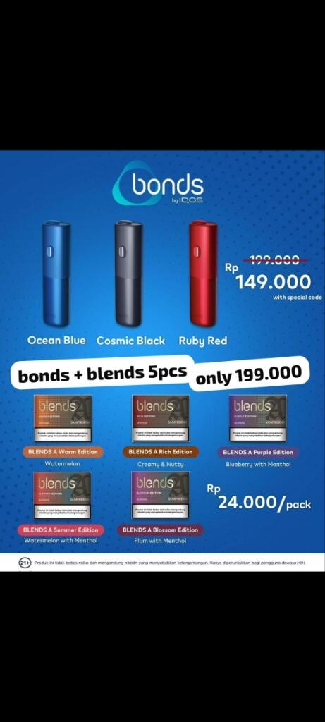 Promo menarik ( 1 bonds + 5 Pcs blends ) only 200k , kuota terbatas .